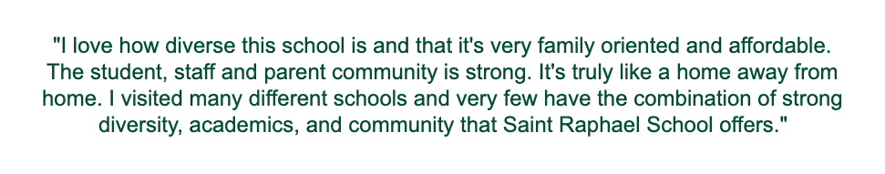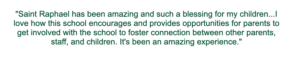 Saint Raphael fosters a family-oriented community where parents can be actively involved in their child’s education and activities and have regular and open communication with our nurturing teachers.